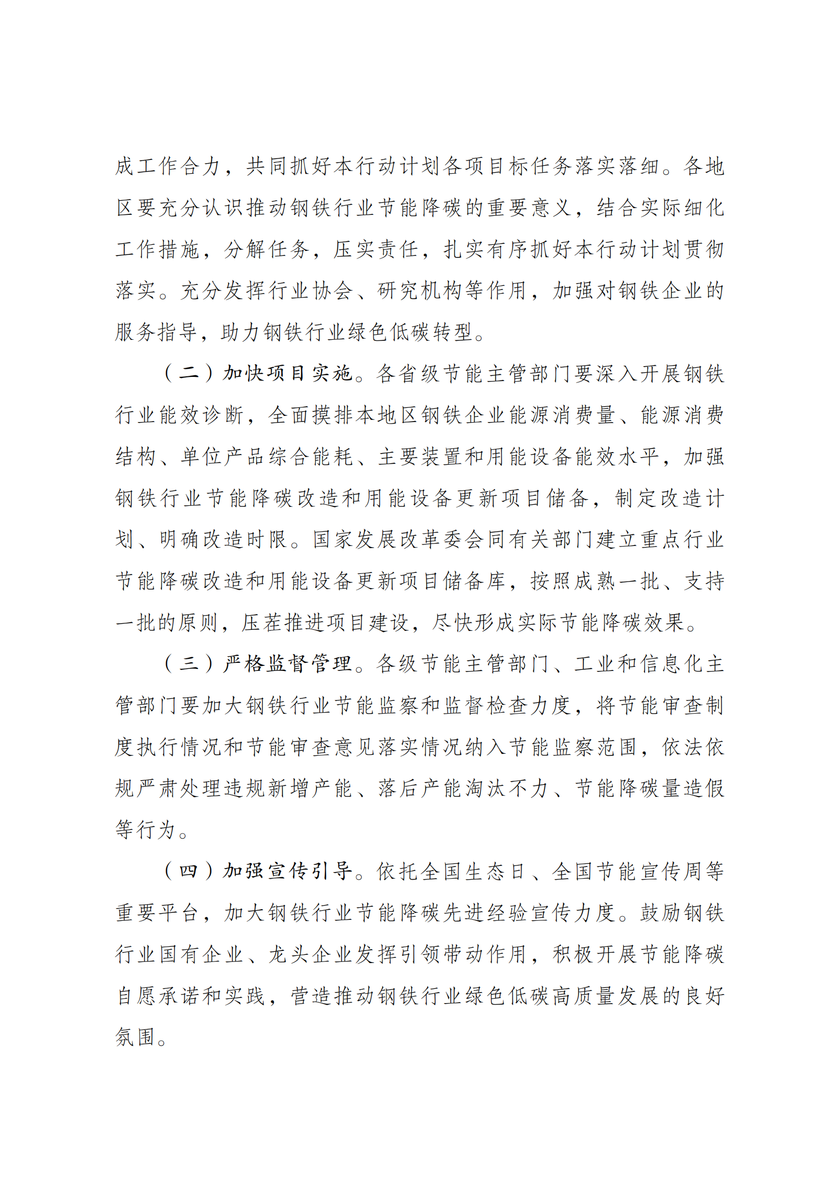 为全面贯彻党的二十大精神,认真落实党中央、国务院决策部署,实施全面节约战略,加大节能降碳工作力度,深入推进钢铁行业节能降碳改造和用能设备更新,支撑完成“十四五”能耗强度降低约束性指标,国家发展改革委、工业和信息化部、生态环境部、市场监管总局、国家能源局等部门制定了《钢铁行业节能降碳专项行动计划》。现印发给你们,请认真抓好落实。
