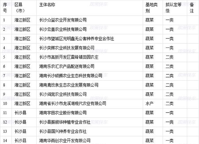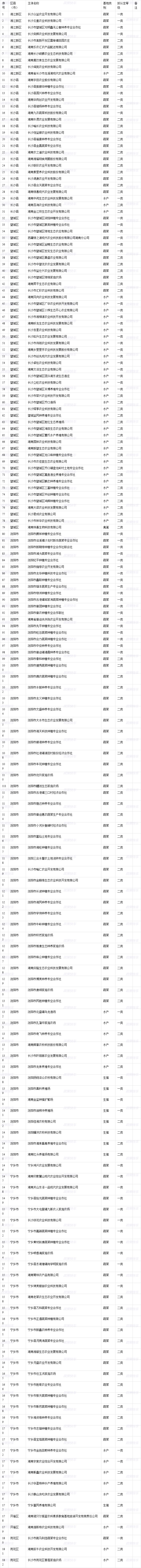 2023年度长沙市“菜篮子”稳产保供基地拟认定名单