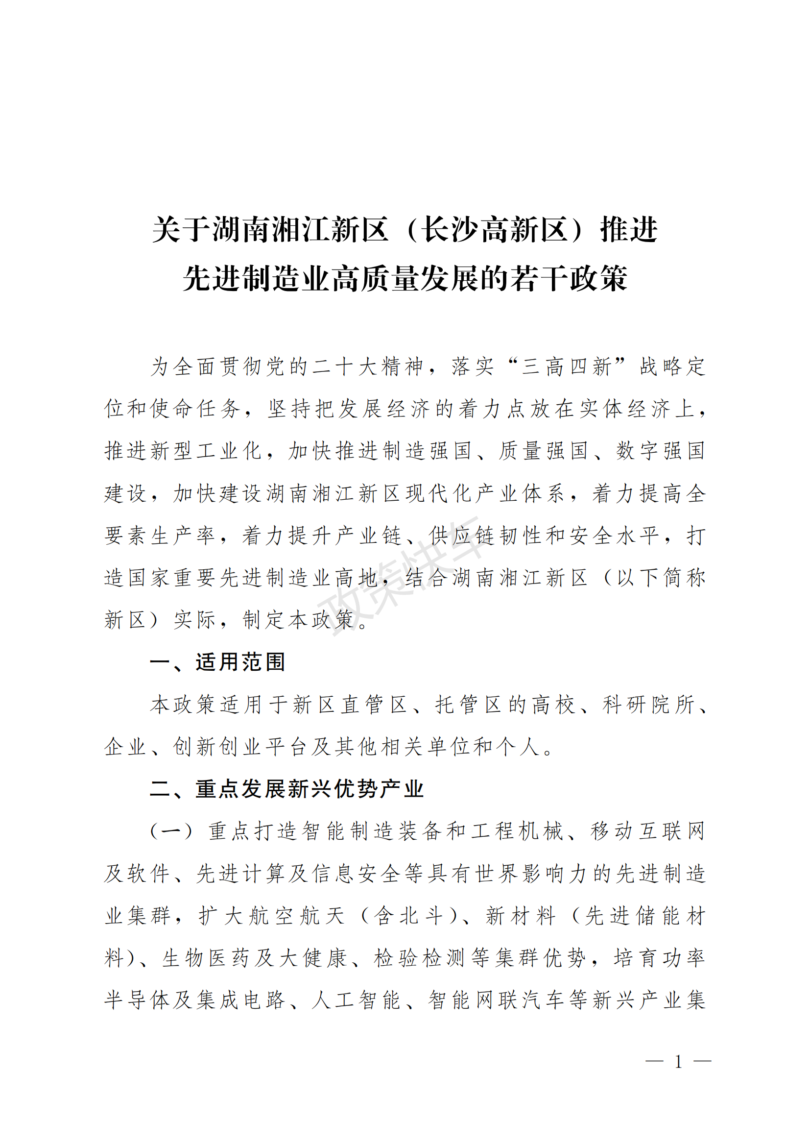 关于湖南湘江新区 (长沙高新区) 推进先进制造业高质量发展的若干政策_01.png